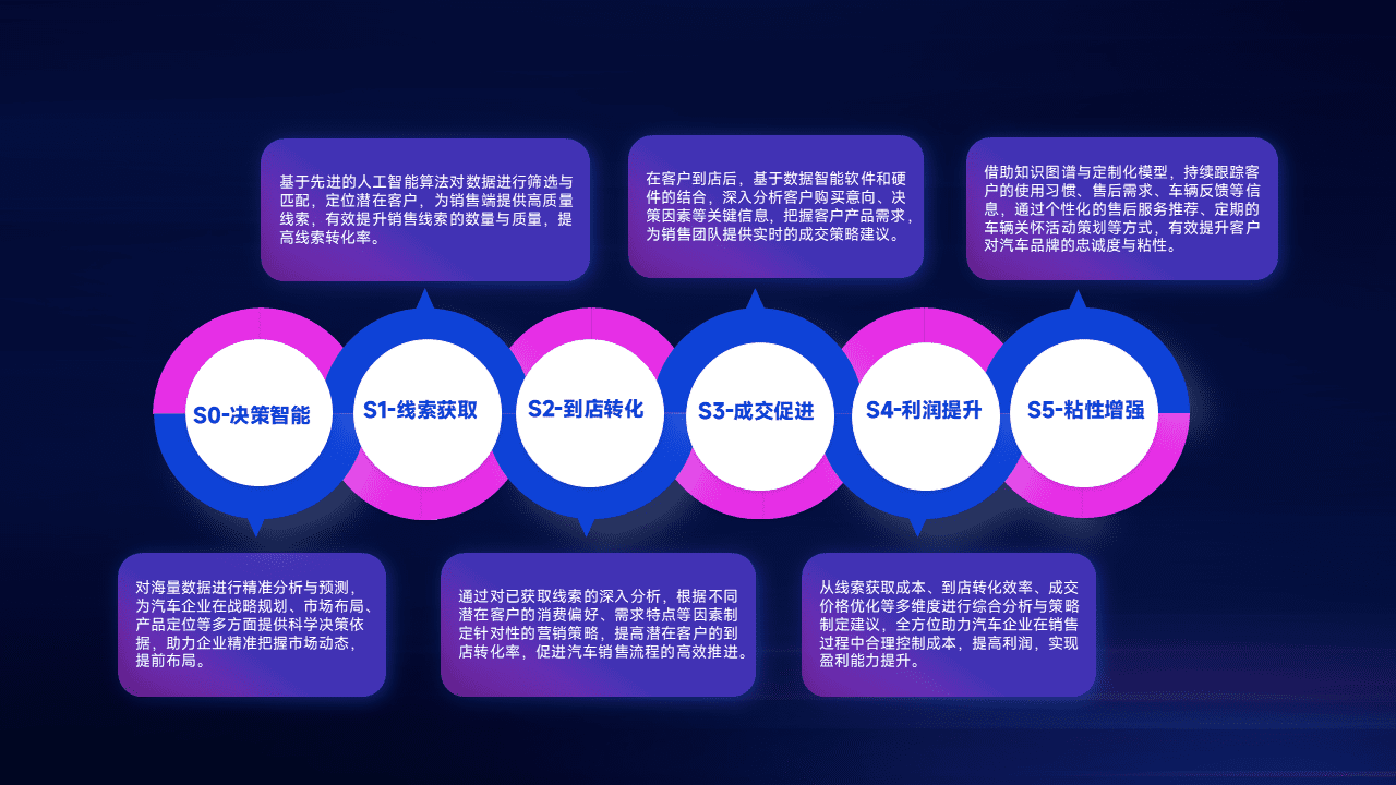 通过拓宽潜在客户来源、、、、优化线索分配并提高到店转化率,,以增强销售效率。。同时,,,,利用线索数据不断优化分析模型,,有效提升转化率,,,扩大营销影响力。。